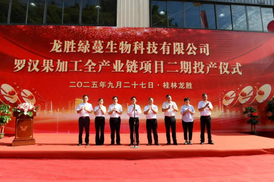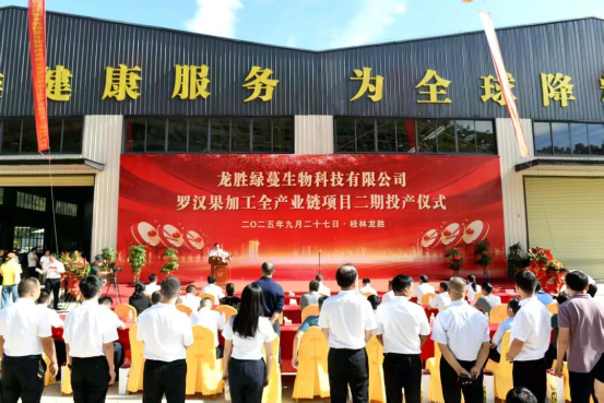 As the golden season of autumn arrives, branches heavy with fruit signal abundance and prosperity. On September 27, 2025 (the sixth day of the eighth lunar month), the launch ceremony of the Phase II Project of Longsheng Nutramax Biotechnology Co., Ltd.’s full industrial chain for monk fruit processing was grandly held at the Lama Poverty Alleviation Industrial Park in Longsheng Various Nationalities Autonomous County.